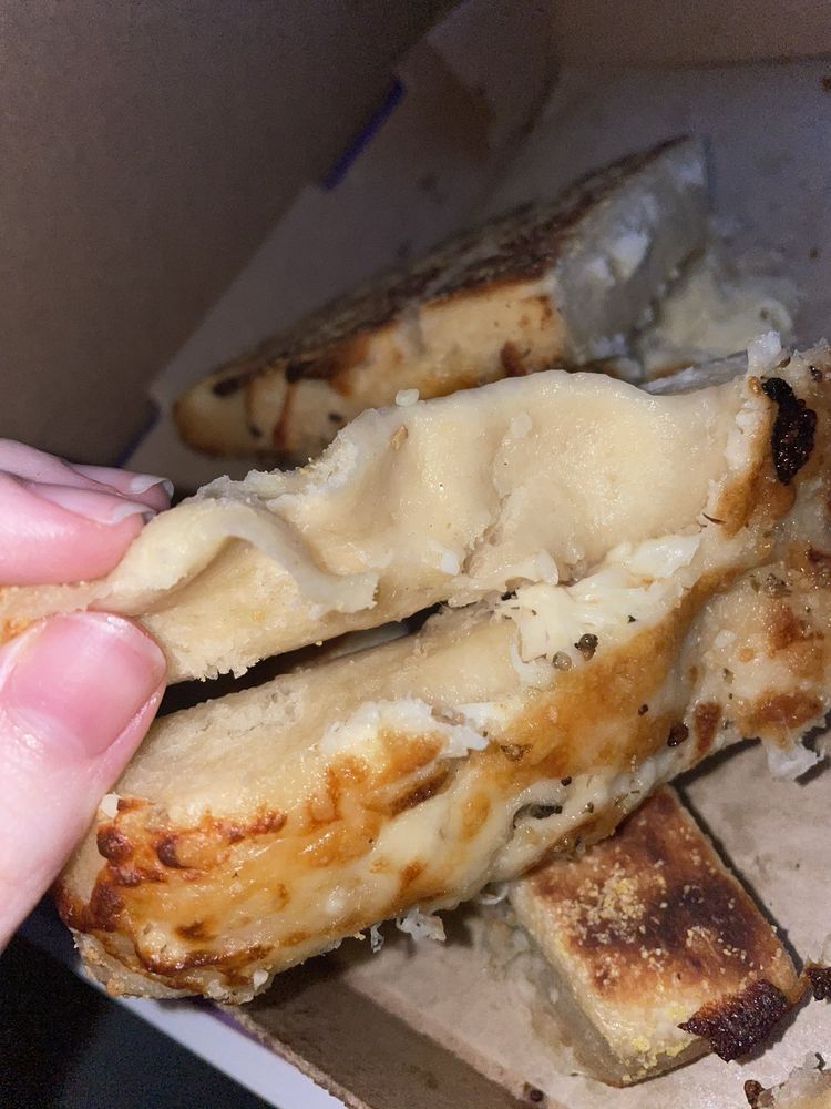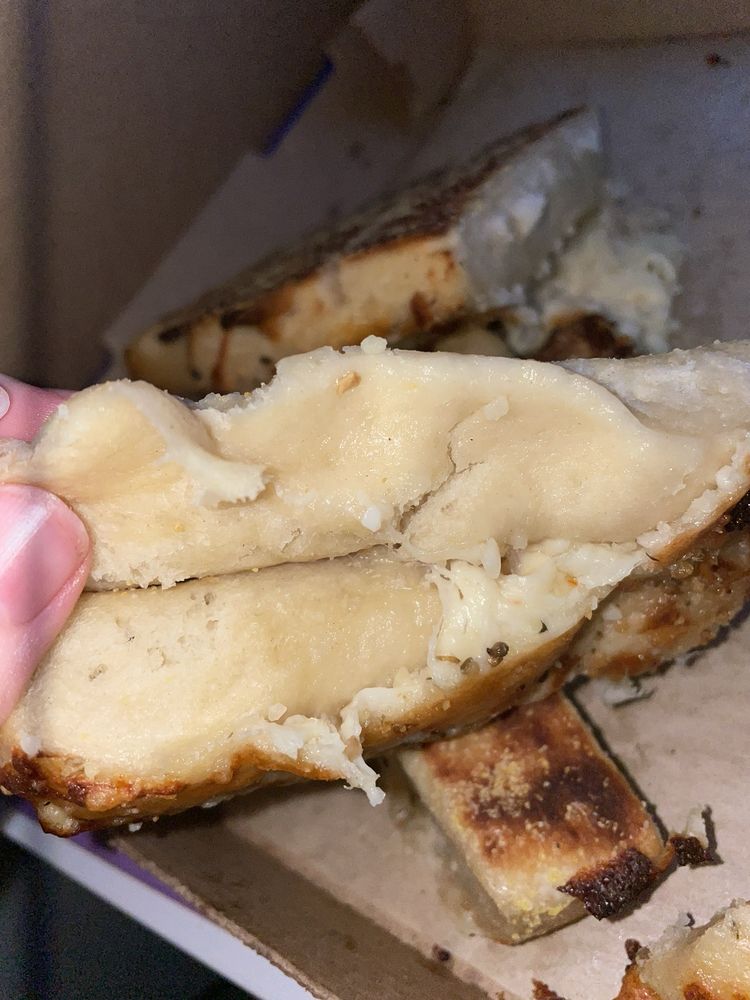 2 Italian Garlic Breadsticks with marinara sauce for dipping.